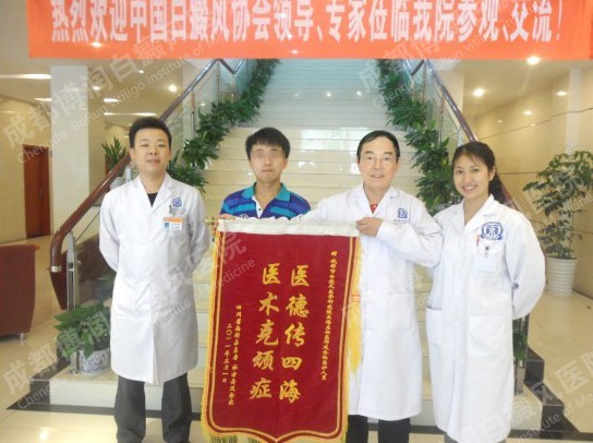 2011年5月,四川南都县患者杜方舟(化名)从家坐车专程赶到了成都博润白癜风医院,将一面“医德传四海、医术克顽症”的锦旗亲手送给了熊万众医生手中,感谢熊万众医生帮他重获青春,现在的杜方舟,意气风发、朝气蓬勃,可在为大家讲述他的康复故事时,却不禁留下了眼泪。